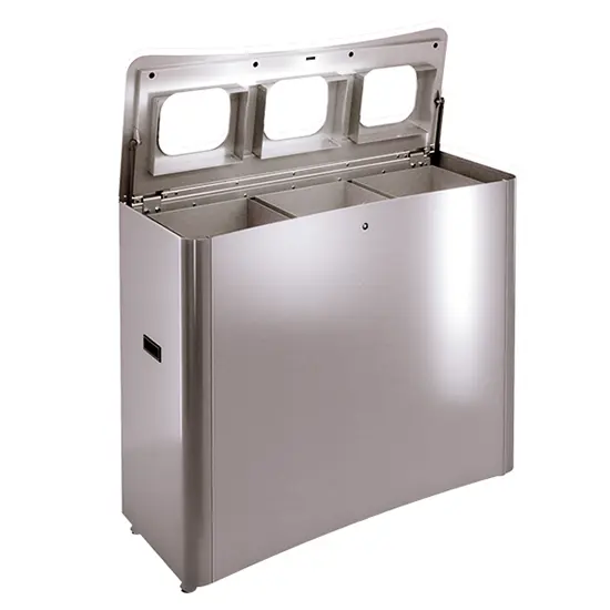 Chaque compartiment est équipé d’un bac rigide, conçu pour un usage avec ou sans sac plastique selon la politique de tri en vigueur.