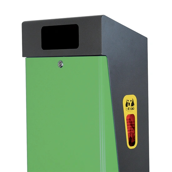 En option, la Sevi peut intégrer un distributeur de sacs canins qui délivre un sac à la fois, réduisant les gaspillages. Cela transforme la poubelle de ville en borne de propreté compacte, idéale pour encourager le ramassage des déjections canines sans multiplier les équipements.